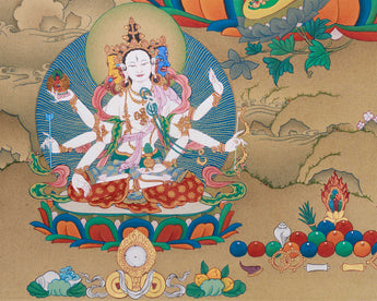 HAND-PAINTED WITH NATURAL LHASA STONE COLOR AND GENUINE 24K GOLD IN TRADITIONAL KARMA GADRI STYLE