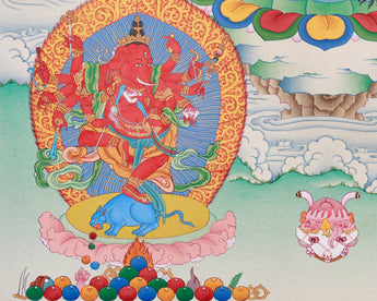 Exquisite Kurkulla with Ganesha and Takiraja Thangka | Sacred Goddess and Divine Protectors