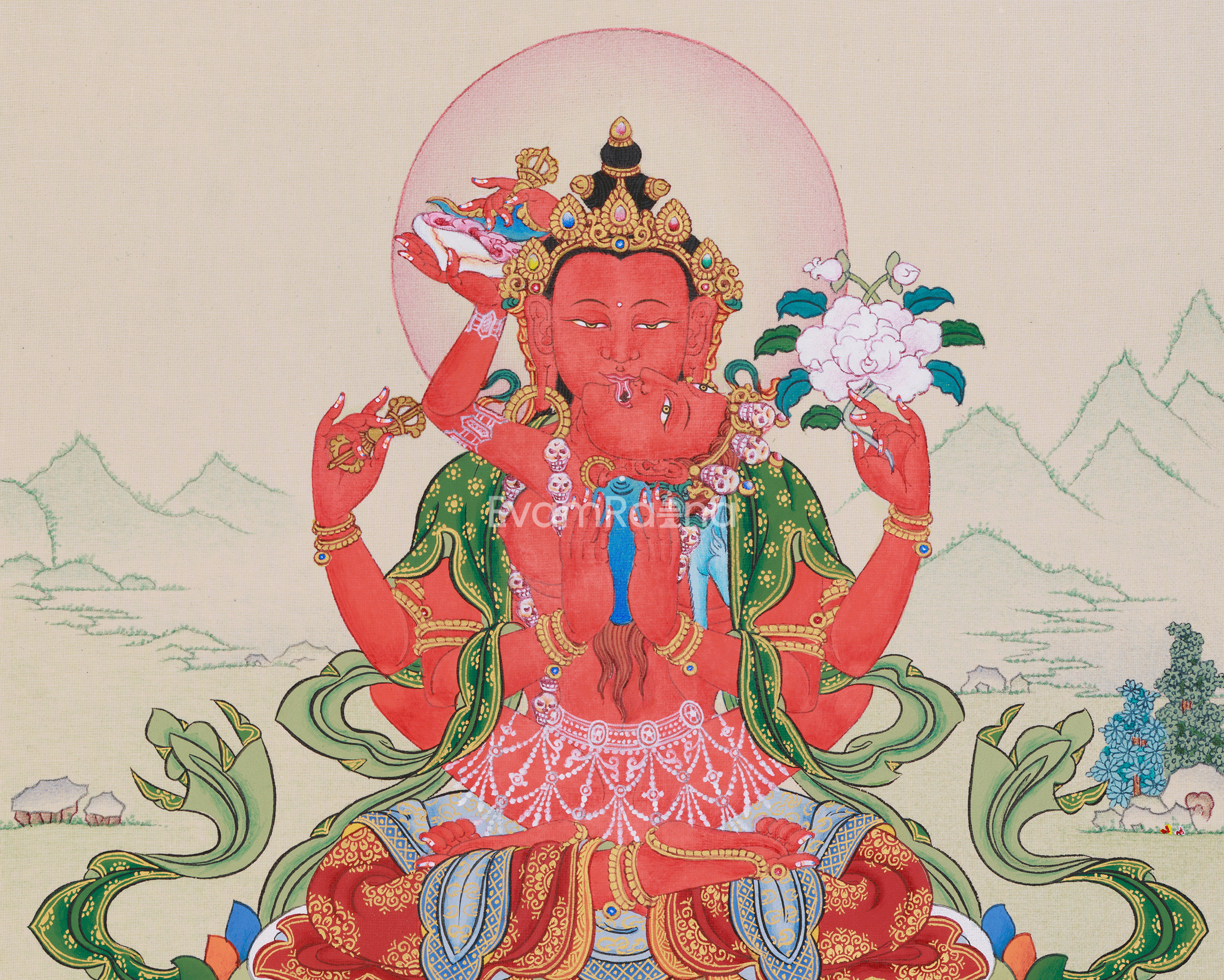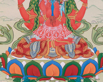 Sacred Red Chenrezig Thangka | Tantric Union of Compassion and Wisdom | Yidam Deity