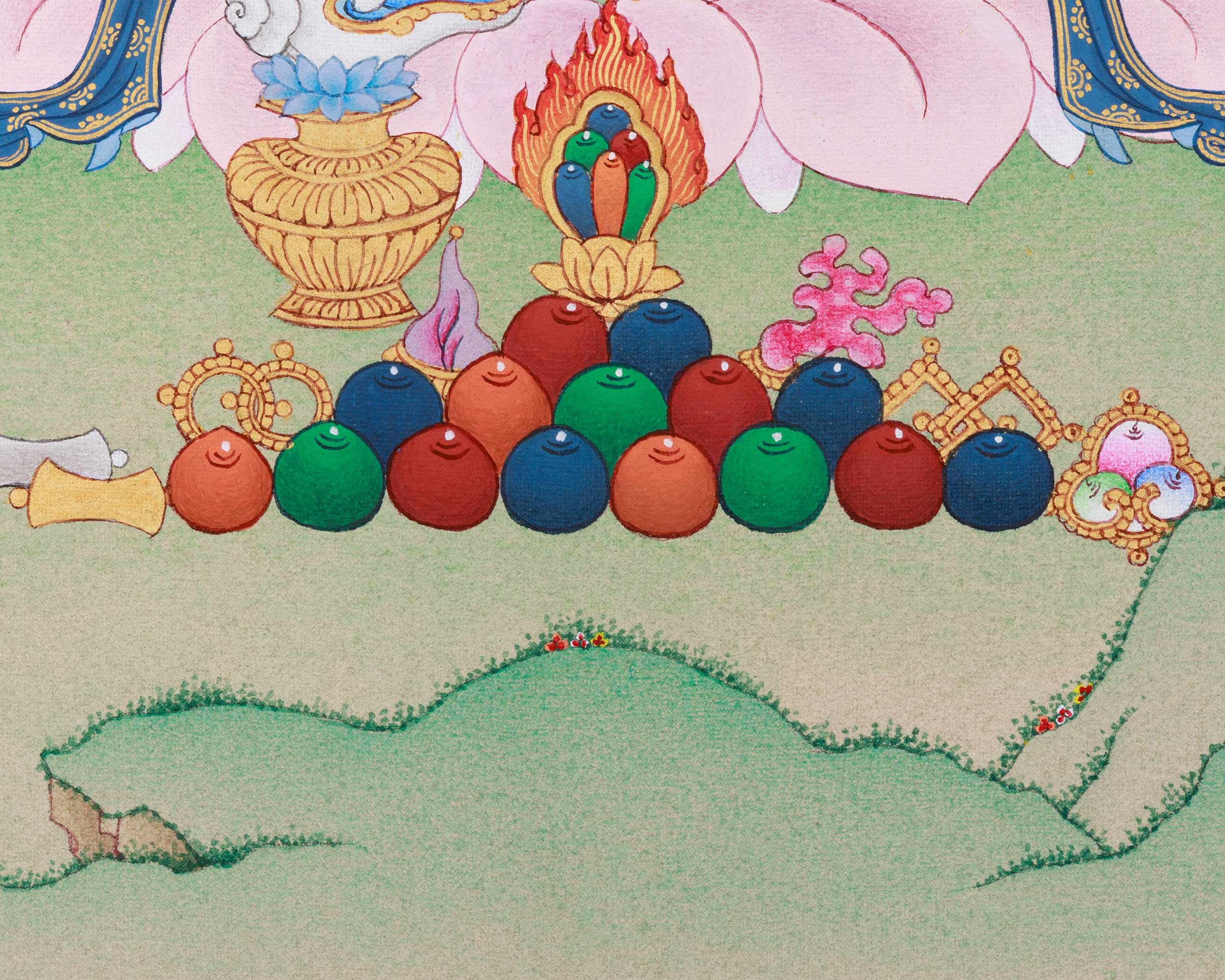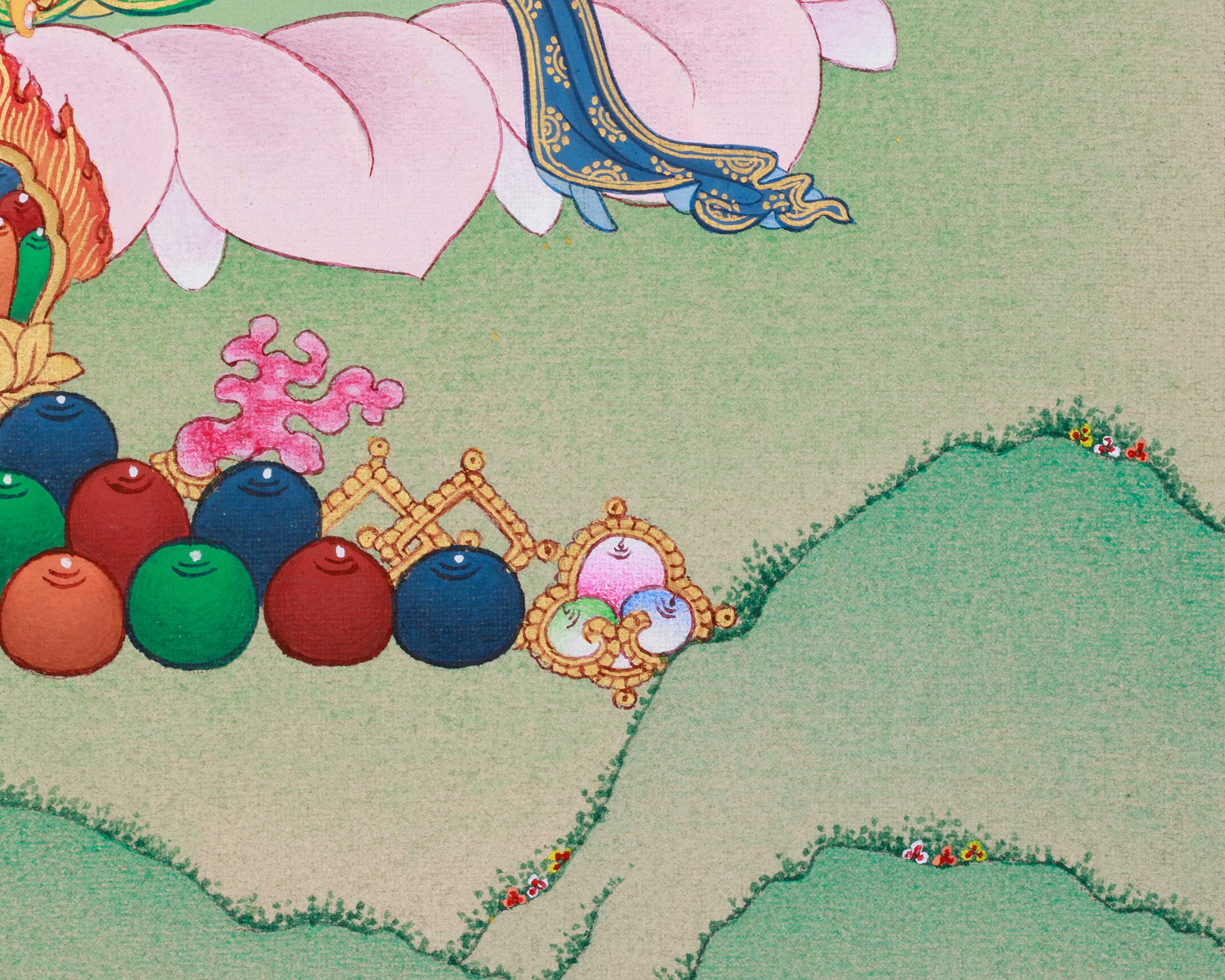 - Regularly inspect your thangka; examine the borders and all attachments.