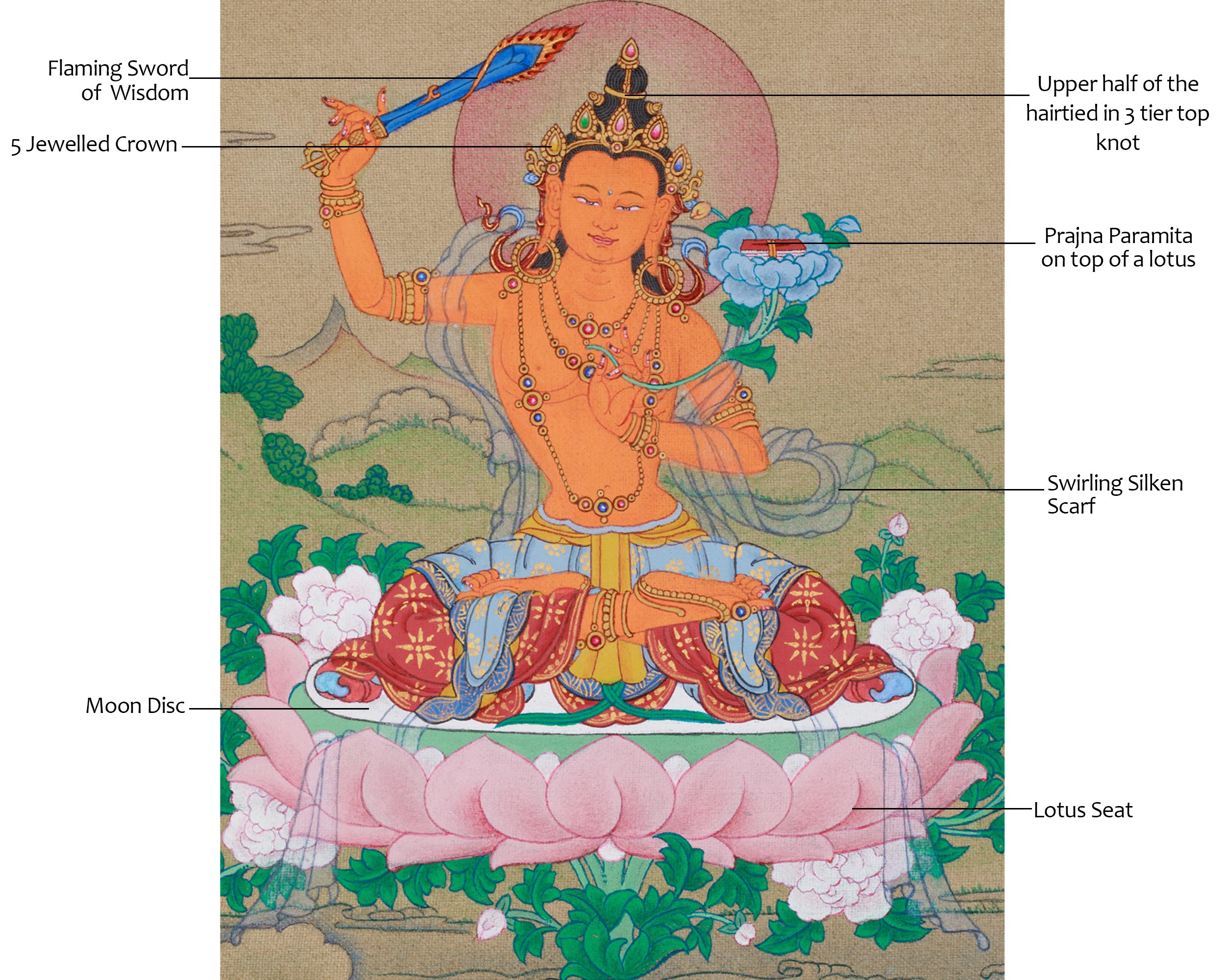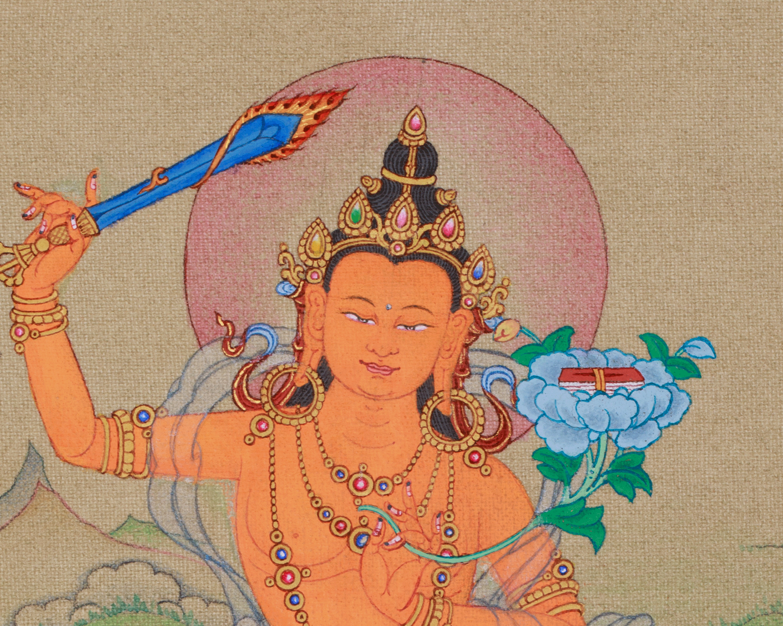 Thangka of Traditional Bodhisattva Manjushri | The Supreme Symbol of Transcendent Wisdom and Insight