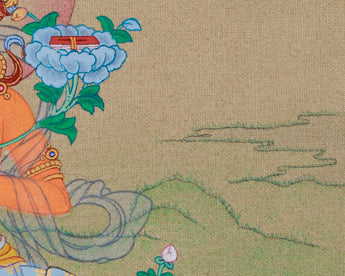 The traditional Bodhisattva Manjushri Thangka, a carefully hand-painted artwork, was produced within our Enlightenment Studio. Created on high-quality cotton canvas utilizing natural stone pigments and authentic 24K gold, this thangka emanates both spiritual vitality and artistic refinement. The mineral-based pigments ensure vibrant, enduring color, while the gold embellishments accentuate Manjushri’s divine presence, symbolizing wisdom and insight. Executed in the Karma Gadri style, renowned for its meticulous detailing, balanced composition, and tranquil aesthetic, this artwork represents an exquisite synthesis of devotion, craftsmanship, and sacred symbolism.