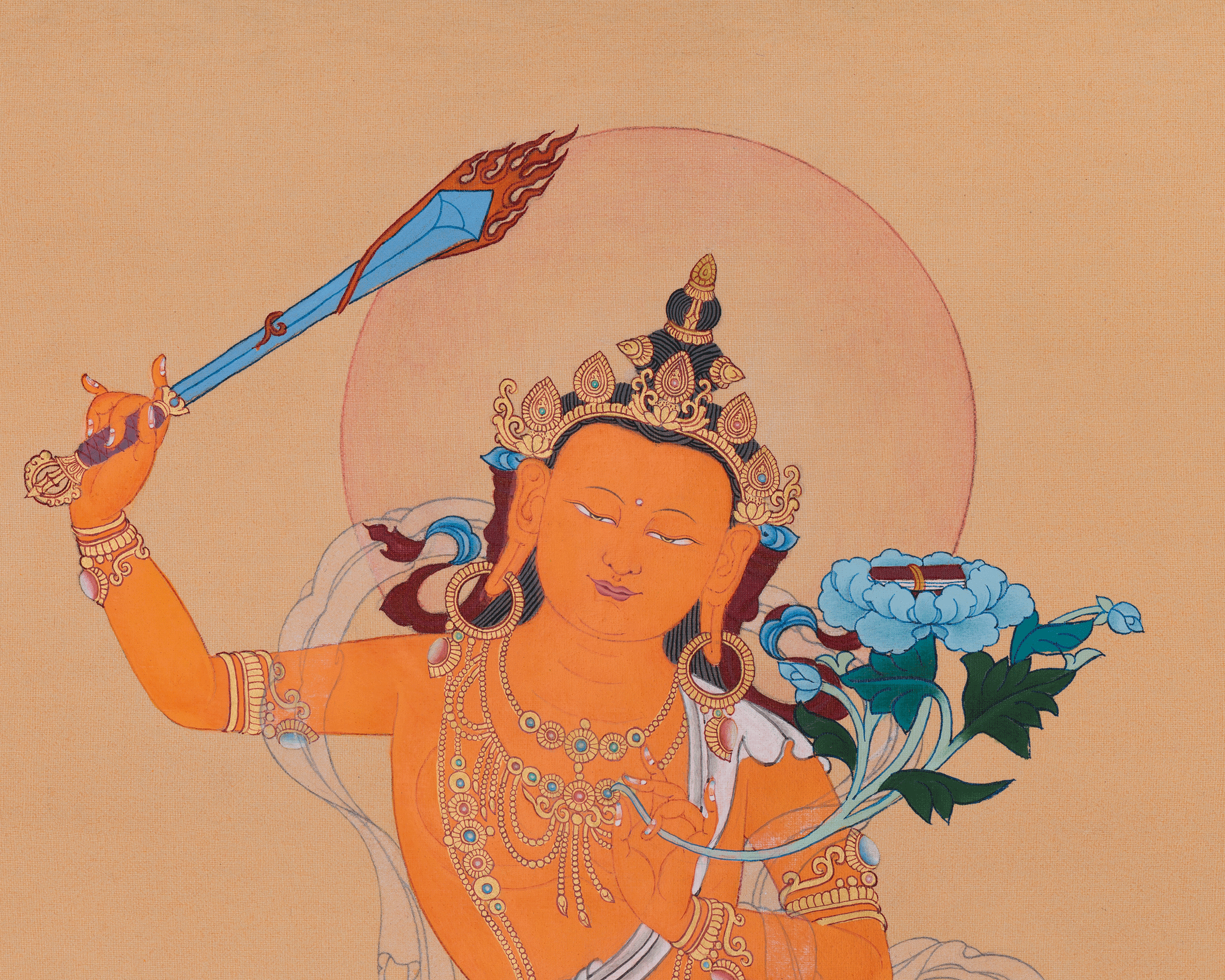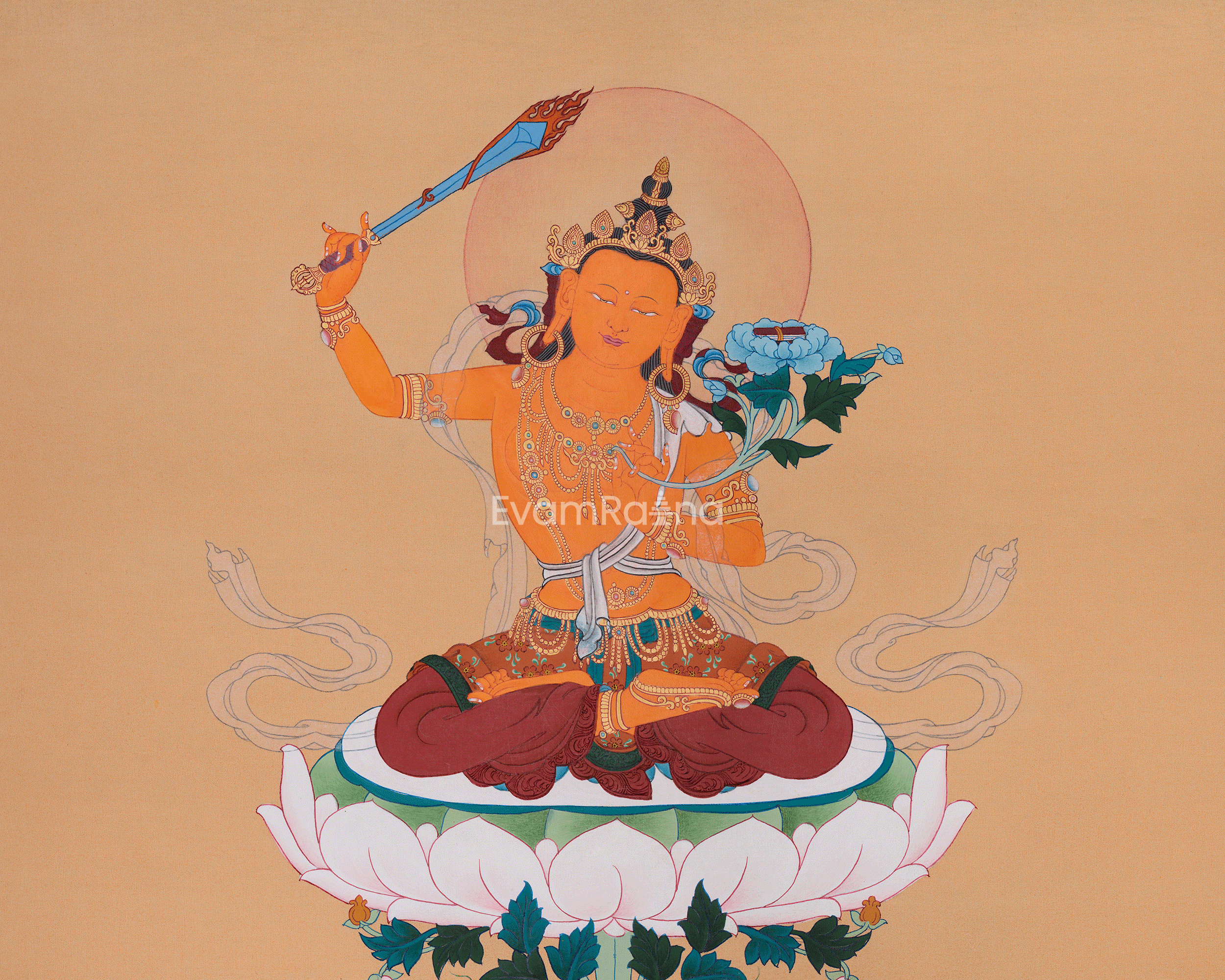 Thangka of Wisdom Deity Manjushri | Tibetan Buddhist Art for Clarity & Learning