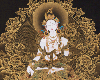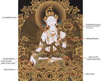 Tibetan White Tara Goddess | Thangka Art of Compassion and Grace