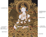 Introduce this Tibetan White Tara Goddess Thangka into your life today and welcome her enduring blessings of compassion, healing, and longevity into your spiritual journey and sacred space.