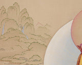 Radiating divine brilliance and sacred artistry, this Vajrayana Buddhism Guru Rinpoche Thangka is meticulously created on high-quality cotton canvas using natural Lhasa stone pigments and embellished with authentic 24K gold. Executed in the refined Karma Gadri style, each stroke is precise and balanced, embodying centuries of Himalayan artistic tradition. The gentle mineral pigments add natural depth and luminosity, while the golden highlights give the thangka a celestial radiance. It makes an excellent painting and a significant spiritual treasure.