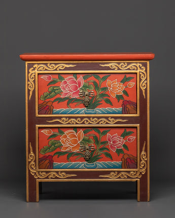 Tibetan Buddhist Drawer Box | Handcrafted Wooden Storage Box
