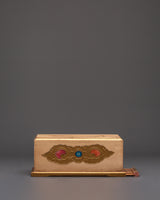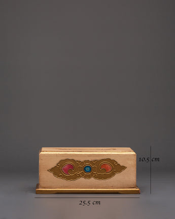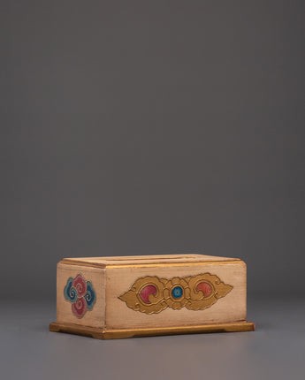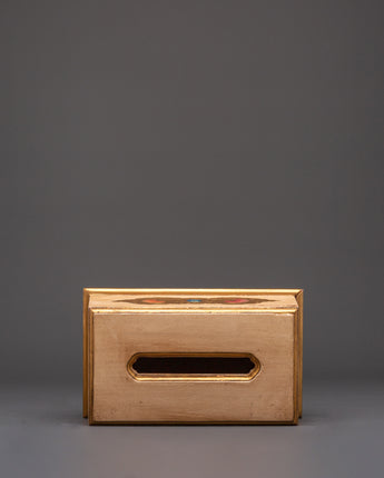 This napkin holder is made of wood and hand-painted with acrylic colors. Its elaborate decorations reflect cultural artistry. The golden base with colorful ornamentation in shades of red and blue provides a bright charm, elevating it beyond a table item to a standout piece of home décor. Its rectangular design and smooth texture let it to match both modern and classic surroundings, making it a perfect choice for celebratory dining tables or everyday use. This wooden napkin holder makes a great home décor present for special occasions, housewarmings, or festive gatherings. Its beautiful craftsmanship ensures that it not only organizes napkins, but also increases the aesthetic attractiveness of any environment.