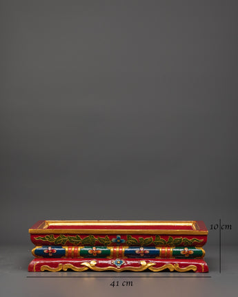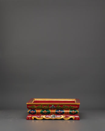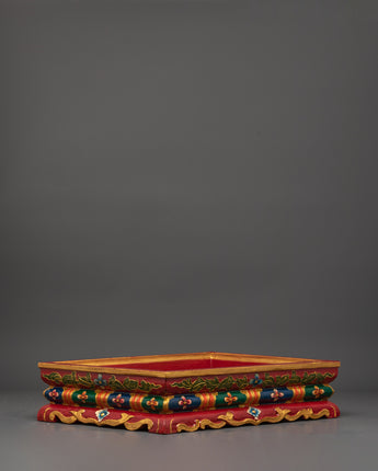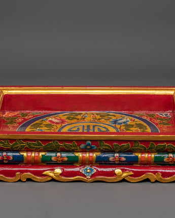 Handcrafted Wooden Tibetan Tray | Sacred Buddhist Altar