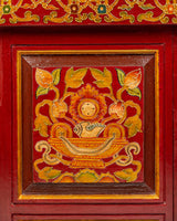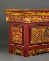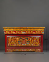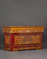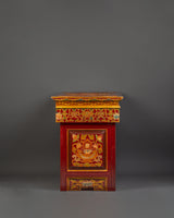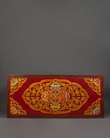 This traditional Tibetan table is expertly built from high-quality wood and finished with elaborate acrylic color motifs. It features bright patterns that symbolize spiritual and cultural history. Weighing 10.62kg, it has a strong, resilient structure that ensures life while retaining its artistic appeal. This handcrafted sculpture, which may be utilized as a sacred altar table, meditation platform, or ornamental element, adds ageless appeal to any Zen-inspired or spiritual setting.