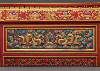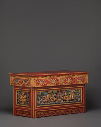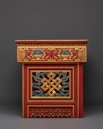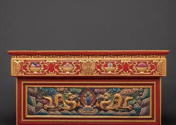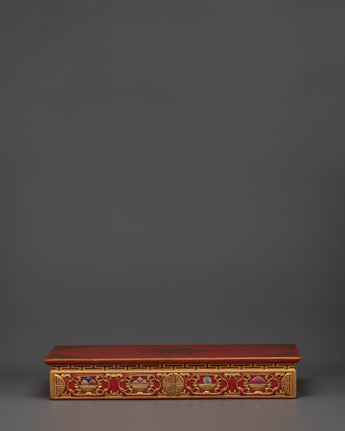 Add a touch of Himalayan creativity to your home decor with this handcrafted Tibetan folding table. Perfect for Buddhist practices, meditation rooms, or as a unique ornamental piece, it adds elegance and profound meaning to your area while representing the rich history of Tibetan ceremonial furniture.