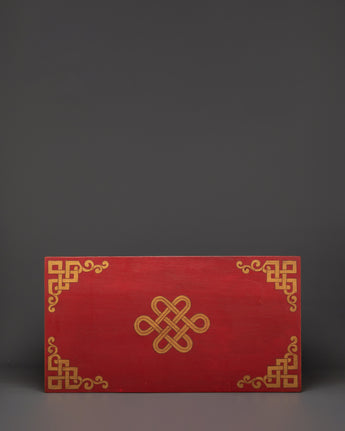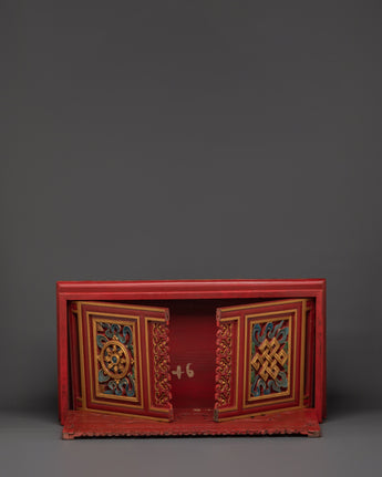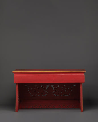 The artistry showcases the skill of traditional artisans, who embellished the table with delicate, hand-painted decorations in rich reds, golds, and vibrant patterns. It is ideal for use as an altar table, ritual decor, or just as a one-of-a-kind statement piece, combining beauty and spiritual connotation. The folding structure also makes it simple to set up and relocate, making it adaptable to your home design and spiritual needs.