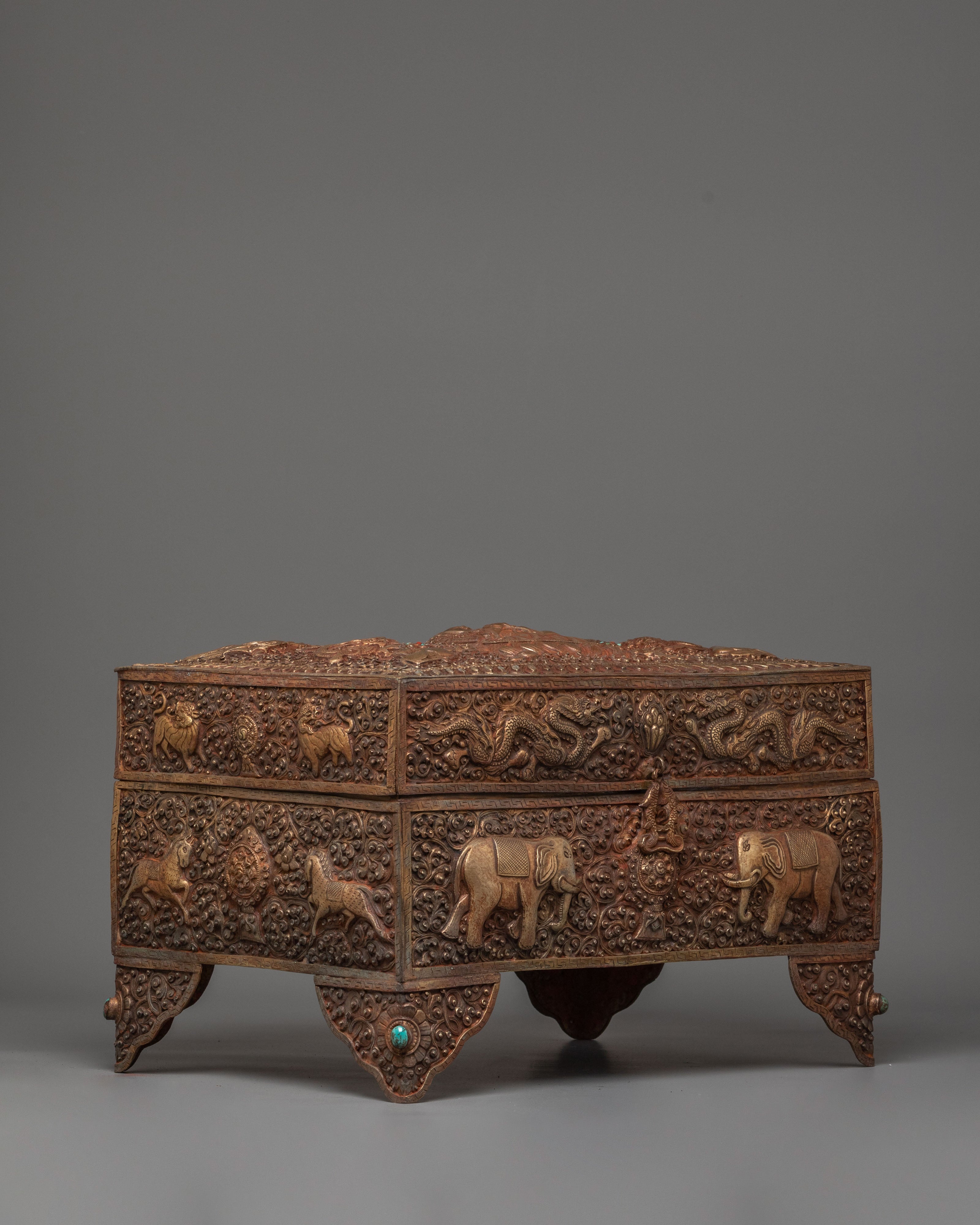 Handmade Tibetan Box | Dragon and Elephant Motifs
