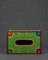 This handcrafted wooden tissue box brings a touch of cultural elegance to your home. It's vibrant and colorful floral design combines traditional Tibetan art with modern craftsmanship. The intricate details and beautiful colors make it not only a functional item but also a stunning decor piece that looks great in any room, from living rooms to offices.