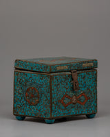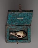 Handmade Wooden Tibetan Box With Sankha | Handmade Set with Silver and Copper Details