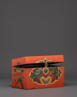 The Bisho Vajra symbolizes indestructibility and spiritual power, the Lotus represents purity and spiritual awakening, and the Conch is used to proclaim the truth and spread the sound of the Dharma. These powerful symbols transform this Tibetan Decorative Storage Box into more than just a functional piece; it becomes a meaningful spiritual artifact. Perfect for holding sacred items, offerings, or prayer beads, this box supports your spiritual practice by keeping your treasured objects safe and close. Its intricate craftsmanship and symbolic designs make it a beautiful addition to any altar or meditation space, enhancing the energy and intention of your sacred environment. Whether for personal use or as a thoughtful gift, this box embodies the rich heritage and profound teachings of Tibetan Buddhism.