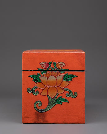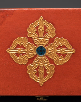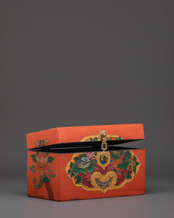 Tibetan Decorative Storage Box | Featuring Bisho Vajra, Lotus, Conch