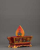 This box, crafted from high-quality wood and painted with acrylic colors, features traditional Tibetan motifs representing prosperity and spiritual harmony. It weighs 0.436kg and is lightweight and durable, making it ideal for storing jewelry, keepsakes, and religious artifacts. This handcrafted box, whether used as a home decor item, a personal storage chest, or a thoughtful present, reflects Tibet's rich handicraft legacy.