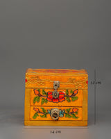 Handcrafted from wood and coated in vibrant acrylic colors, this box serves as both functional storage and a spiritual element for your home altar, meditation area, or cultural décor. The two lockable compartments offer added privacy and security for your treasured items. It makes a wonderful gift for spiritual seekers, Tibetan art enthusiasts, or anyone who appreciates meaningful, handcrafted decor.