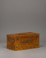 Add a touch of refinement to your home or office with this handcrafted hardwood tissue holder, which is both utilitarian and visually appealing. This compact yet capacious tissue box, measuring 12cm in height and 24cm in width, fits seamlessly into any décor. The natural timber construction, accented with brilliant acrylic colors, gives timeless appeal while ensuring endurance.