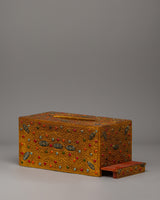 This tissue holder, made of high-quality wood and hand-painted in acrylic colors, combines artistry and utility. The smooth finish and construction make it a beautiful addition to your living room, dining area, bedroom, or office. Its lightweight design (weighing only 0.632 kg) allows easy mobility. This artisanal tissue holder is ideal for an exquisite desk accent or a kind gift.