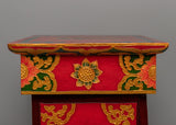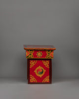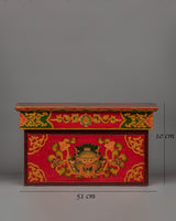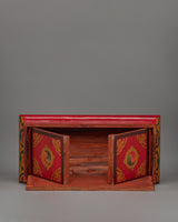 A wooden folding table for shrines designed for versatility and elegance, this compact table measures 10cm in height and 51cm in width, giving a stable and durable platform for displaying deities, pooja items, or sacred relics. It combines traditional craftsmanship, wood construction, and hand-painted acrylic colors.