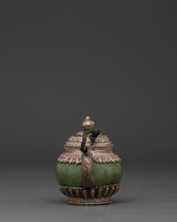 Made from 92.5% pure silver, this ritual teapot reflects craftsmanship rooted in Himalayan tradition. The inclusion of jade adds a touch of elegance and spiritual symbolism, often associated with longevity and protection. Lightweight yet at 0.23 kg, it’s perfect for meditation spaces, home altars, or as a unique gift for spiritual seekers. A true collector's item that embodies devotion and artisanal excellence.