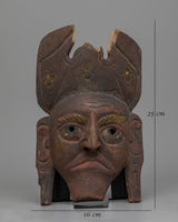 Embark on a journey through time with our Antique Wood Carved Mask, a captivating artifact handcrafted on wood and standing 25cm tall. This vintage mask was collected during 1980's from Kathmandu brought down from Himalayan region for barter and trade.