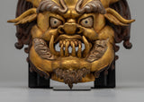 Standing 26 cm tall and 18 cm wide, the mask's accurate dimensions add to its dramatic impact. The silver inlay in the eyes generates a striking contrast to the golden face, generating in an intense look that illustrates the meticulous craftsmanship. The swirling patterns around the forehead, bushy brows, and flowing mustache add to the mask's appearance of movement and life, elevating it beyond just an ornament. Every detail, from the precise curves of the horns to the patterned beard, has been meticulously sculpted to demonstrate the artist's expertise and knowledge of traditional Tibetan symbolism.