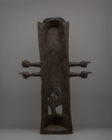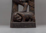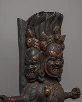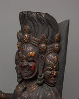 This Bhairav Wooden Strut is a handcrafted masterpiece, expertly carved from wood to portray Bhairav's powerful and protective spirit. With a height of 79 cm, a width of 49.5 cm, and a weight of 3.23 kg, this sculpture commands attention and is excellent for temples, altars, and meditation places. The wood's dark tones, complemented by meticulous workmanship and subtle color hints, represent Bhairav's force and fury, making it a distinctive piece of spiritual art.