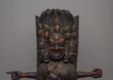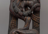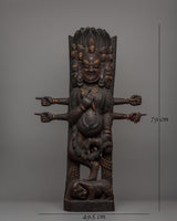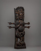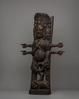 The workmanship emphasizes Bhairav's multiple arms and fierce look, which represent his duty as a protector and obstacle remover. Every detail, from the exquisite ornamentation to the dynamic stance, reflects skillful craftsmanship and love. Whether utilized as a focal point for spiritual meditation or displayed as an important cultural item, this wooden strut is an outstanding example of traditional workmanship and spiritual meaning.