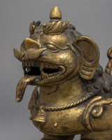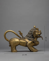 Adorn your space with the majestic presence of the Brass Lion Statue, a handcrafted masterpiece showcasing detailed craftsmanship on a brass body, boasting a substantial width of 32cm and a weight of 3.49kg, promising not only aesthetic appeal but also a significant, dignified presence in your environment.