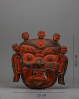 At 28.5 cm in height, the Bhairav Brass Mask is a magnificent work of art that has been carefully made by hand from brass. The ferocious deity Bhairav, who is regarded in Buddhist and Hindu traditions for his abilities to guard and vanquish evil, is shown in this mask. The mask's intricate carvings capture Bhairav's fierce look, which radiate power and authority. The brass material of the mask adds a rich, golden finish that accentuates its remarkable appearance.