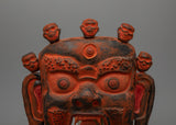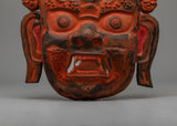 Bhairva is a Hindu deity associated with destruction and protection. He is often depicted as a fierce and powerful figure with fierce expressions and prominent fangs. In Tibetan Buddhism, Bhairva is considered a protector deity and is revered for his ability to conquer negative forces and bring blessings to his devotees. He is also associated with the Buddhist principle of non-attachment, as he is said to have transcended all attachment to worldly desires and emotions. Bhairva is considered a deity of great power and is often invoked for protection and overcoming life obstacles. He is often depicted in Tibetan Buddhist art, such as statues and masks, and is a popular subject of devotion and meditation for many Buddhists.