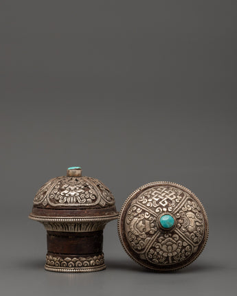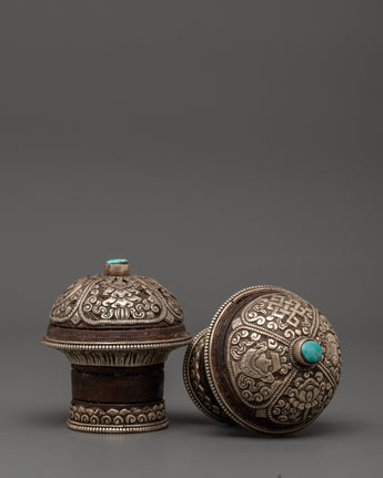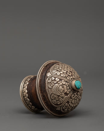 Traditional Tibetan Ritual Accessory Featuring Pure Silver and Turquoise Stone