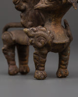 Crafted from bronze using traditional metal casting techniques, this lamp is a utilitarian spiritual tool and a cultural artwork. The lion is intimately associated with ferocious protector deities such as Durga and Narasimha, representing victory over darkness and fear. Its deep bronze tone and gentle worn patina give it an elegant appeal, making it appropriate for ceremonial and ornamental reasons. Whether you burn it during a daily prayer, give it to a spiritually inclined loved one, or exhibit it as part of your temple decor, this sacred sculpture represents devotion, craftsmanship, and legacy in a single strong form.