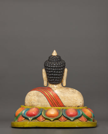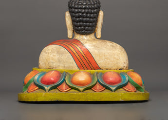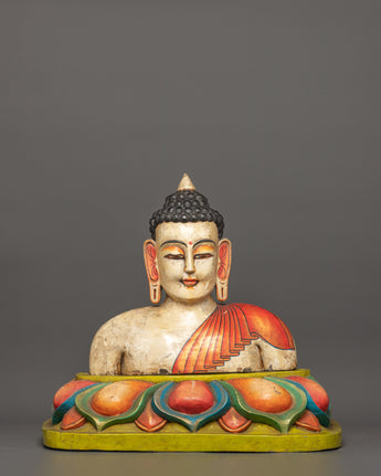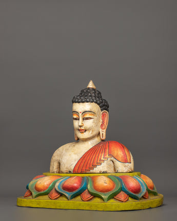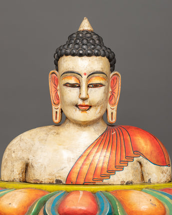 This handcrafted Buddha head statue is a wonderful symbol of knowledge, serenity, and enlightenment. This statue, expertly carved from solid wood and finished in a brilliant acrylic color, represents Buddha's placid expression, radiating tranquility and mindfulness. Its 46cm height and 49cm width make it an eye-catching addition to meditation areas, yoga studios, and home altars.