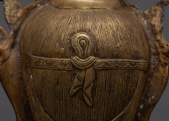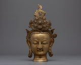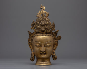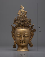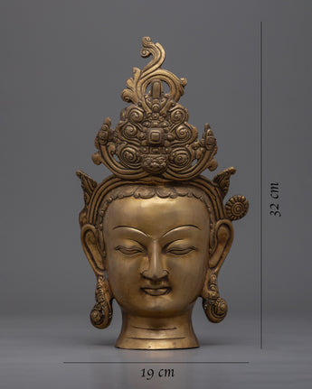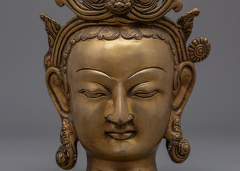 The Buddha head statue is a stunning depiction of Siddhartha Gautama, which is made up of brass the revered spiritual teacher and founder of Buddhism. The figure shows the head of the Buddha, who has closed eyelids and a tranquil look that conveys inner serenity and contemplation. The delicate features of the statue, like the lengthened earlobes, arching eyebrows, and soft curvature of the forehead, all aim to represent the Buddha's awakened knowledge and compassion. The statue is crafted using brass and has complex hand carvings.