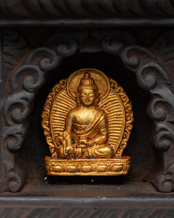 Buddha Set with Wooden Altar Box | Tibetan Buddhist Shrine Decor