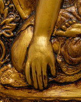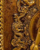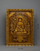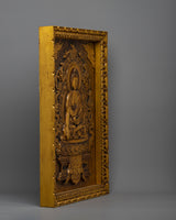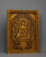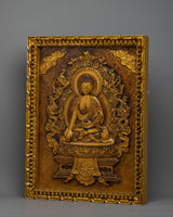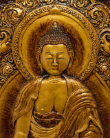 Hand-Carved Shakyamuni Buddha Thangka Art | Gold Wooden Thangka For Meditation Practice