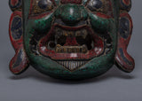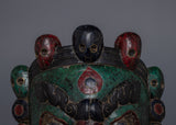 Bhairva is a Hindu deity associated with destruction and protection. He is often depicted as a fierce and powerful figure with fierce expressions and prominent fangs. In Tibetan Buddhism, Bhairva is considered a protector deity and is revered for his ability to conquer negative forces and bring blessings to his devotees. He is also associated with the Buddhist principle of non-attachment, as he is said to have transcended all attachment to worldly desires and emotions. Bhairva is considered a deity of great power and is often invoked for protection and overcoming life obstacles. He is often depicted in Tibetan Buddhist art, such as statues and masks, and is a popular subject of devotion and meditation for many Buddhists.