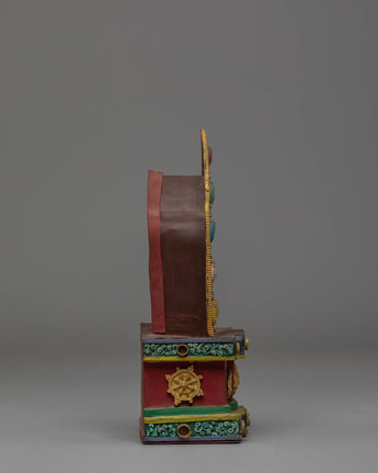 This torana serves as both a protective and uplifting gateway, enhancing the presence of the deity it accompanies. Its symbolism encourages strength, clarity, and spiritual grounding, making it a meaningful addition for practitioners seeking to enrich their meditation space or elevate their altar with an auspicious, culturally rooted support piece.