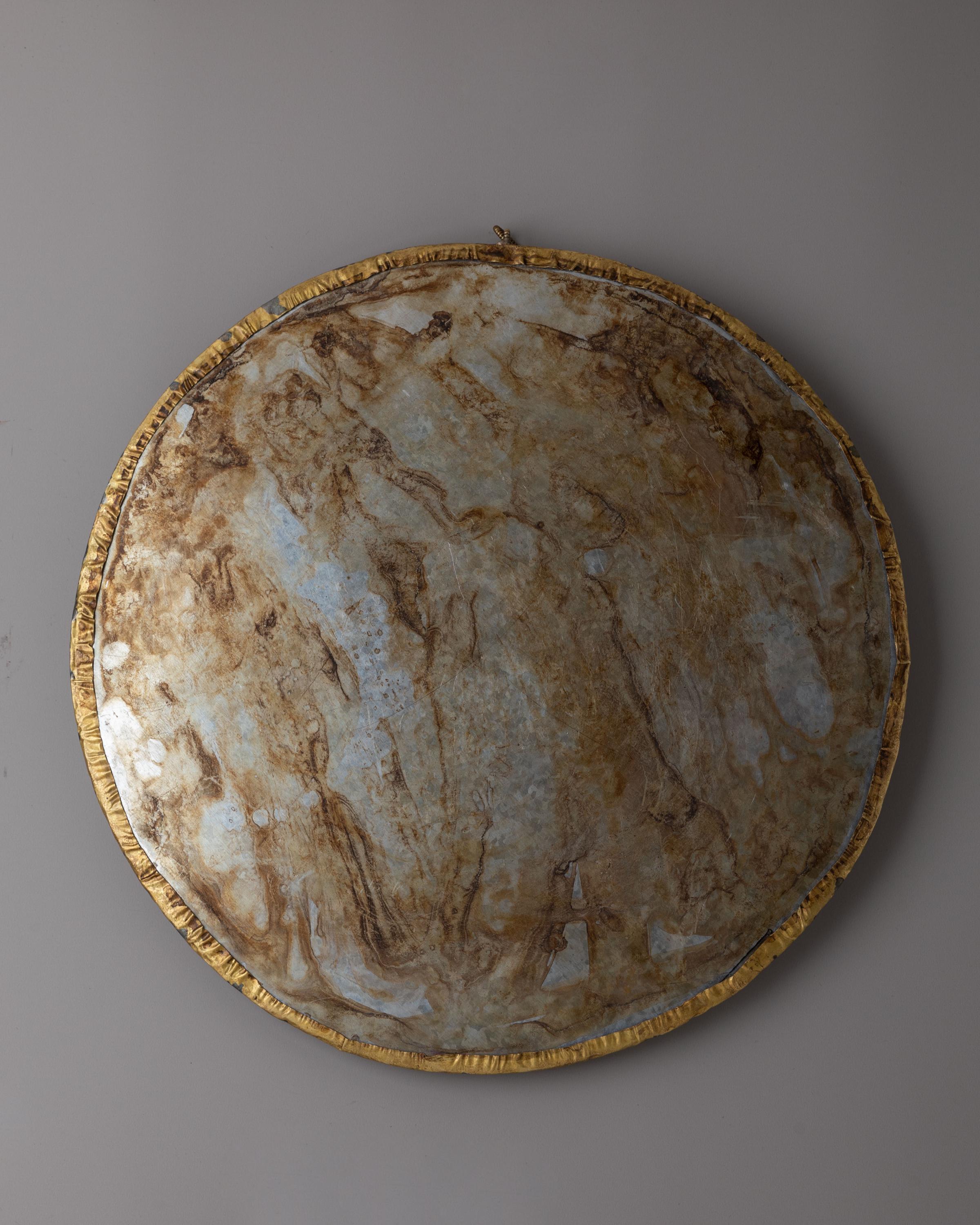 A metal thangka is a type of thangka painting made on a metal surface, rather than traditional canvas or paper. These thangkas are often crafted from copper, brass, or silver and feature intricate designs and Buddhist iconography created using a repoussé technique. This involves hammering the metal from the reverse side to create a raised relief image on the front. Known for their durability, metal thangkas are frequently used in ritual contexts or as decorative pieces in Buddhist homes and temples, as they can withstand the rigors of daily use and last for many years.