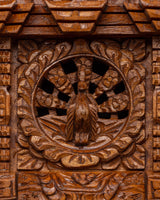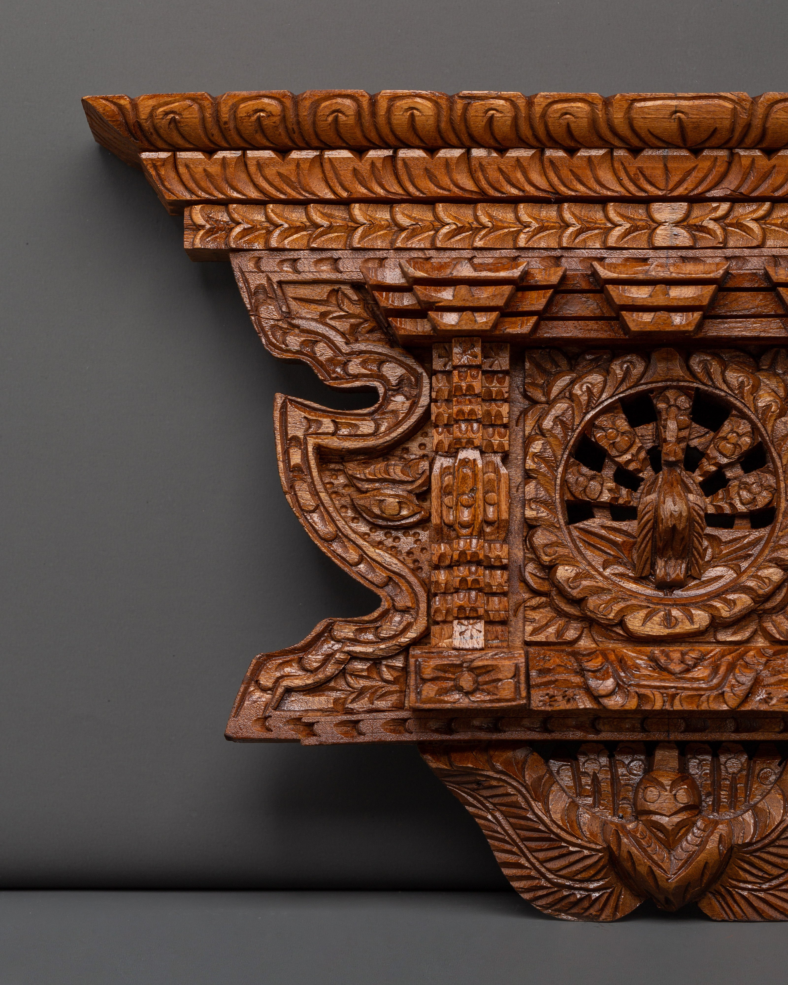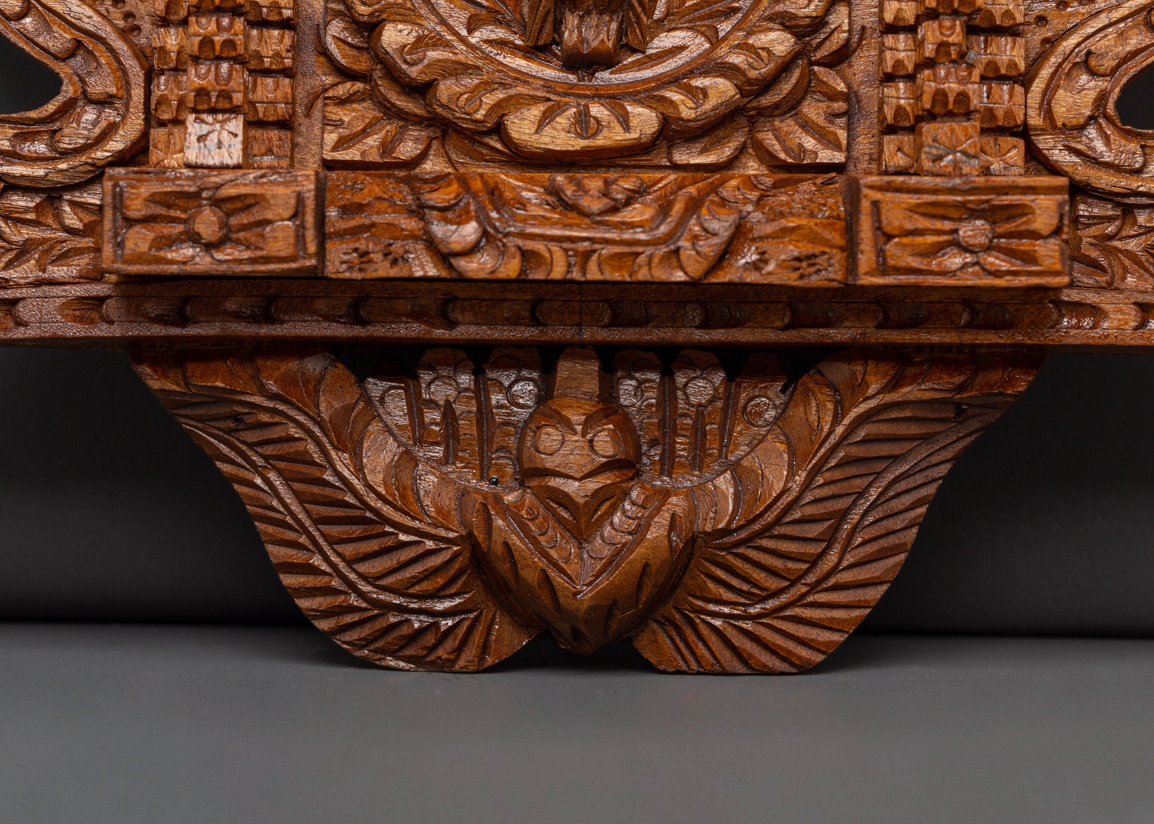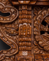 The central motif of the peacock symbolizes beauty, grace, and spiritual growth. Its feathers are exquisitely carved, conveying the bird’s symbolic representation of divine energy and transformation. This piece is perfect for those seeking to bring a touch of nature, elegance, and serenity into their home, while also adding a meaningful, spiritual symbol to their walls.