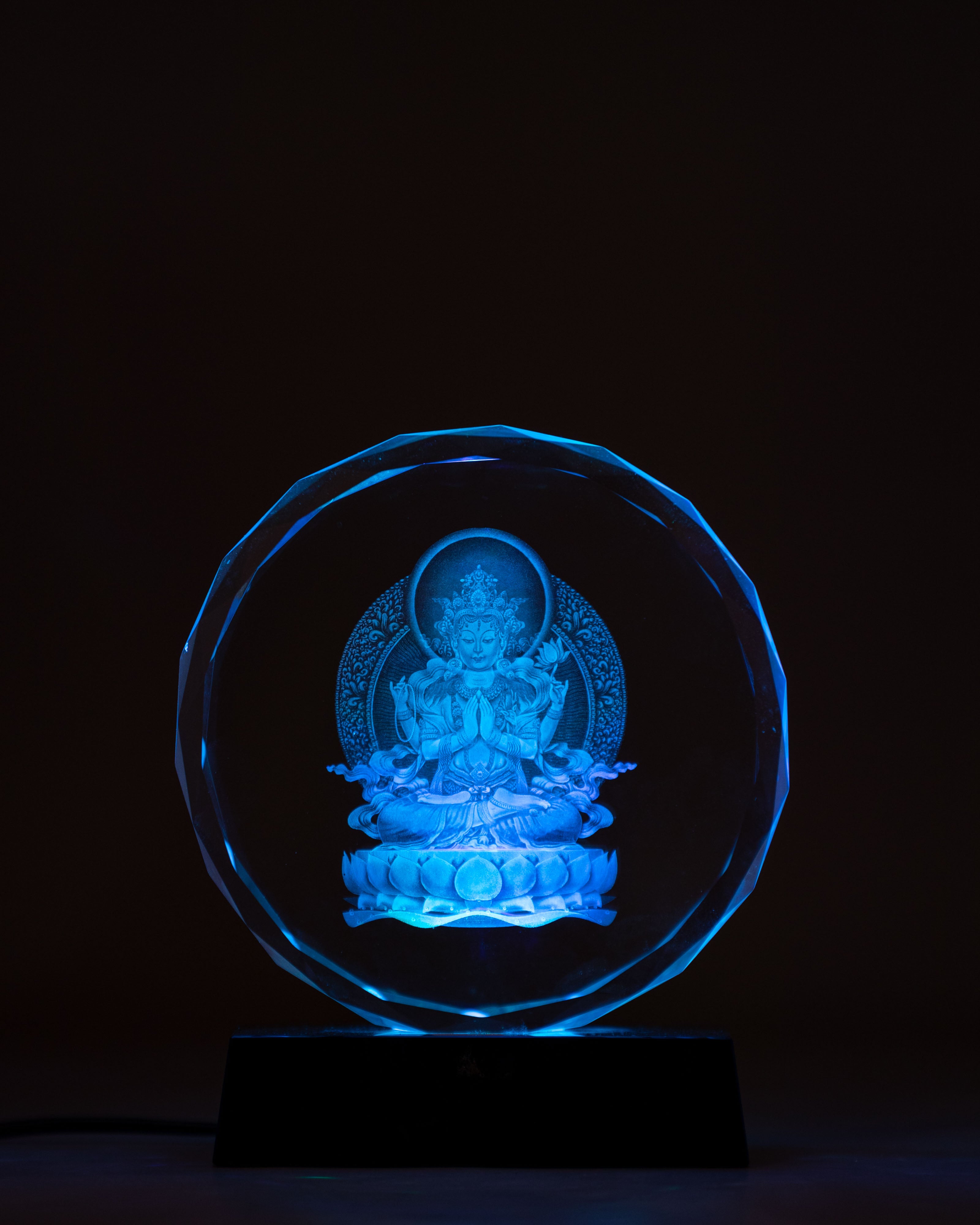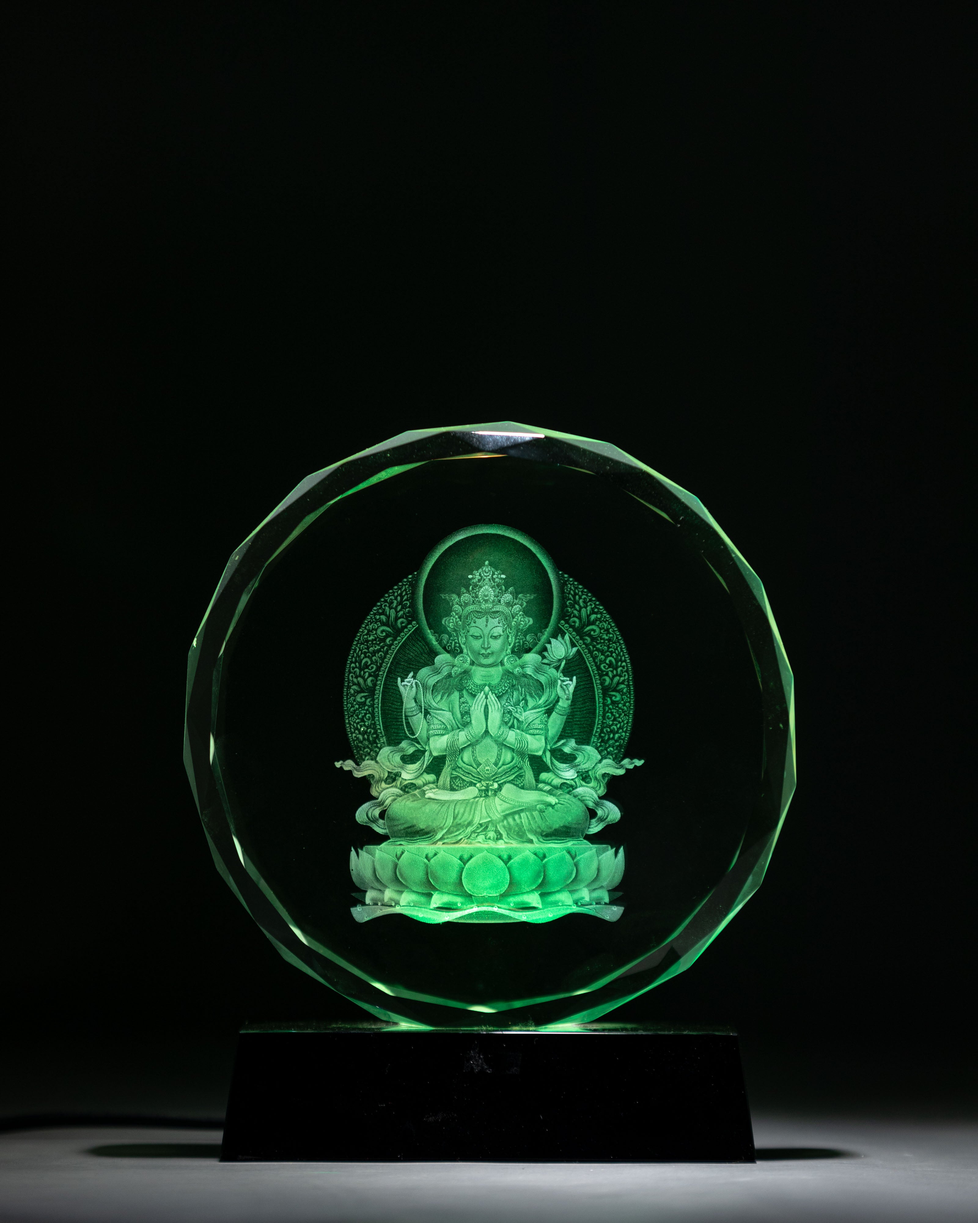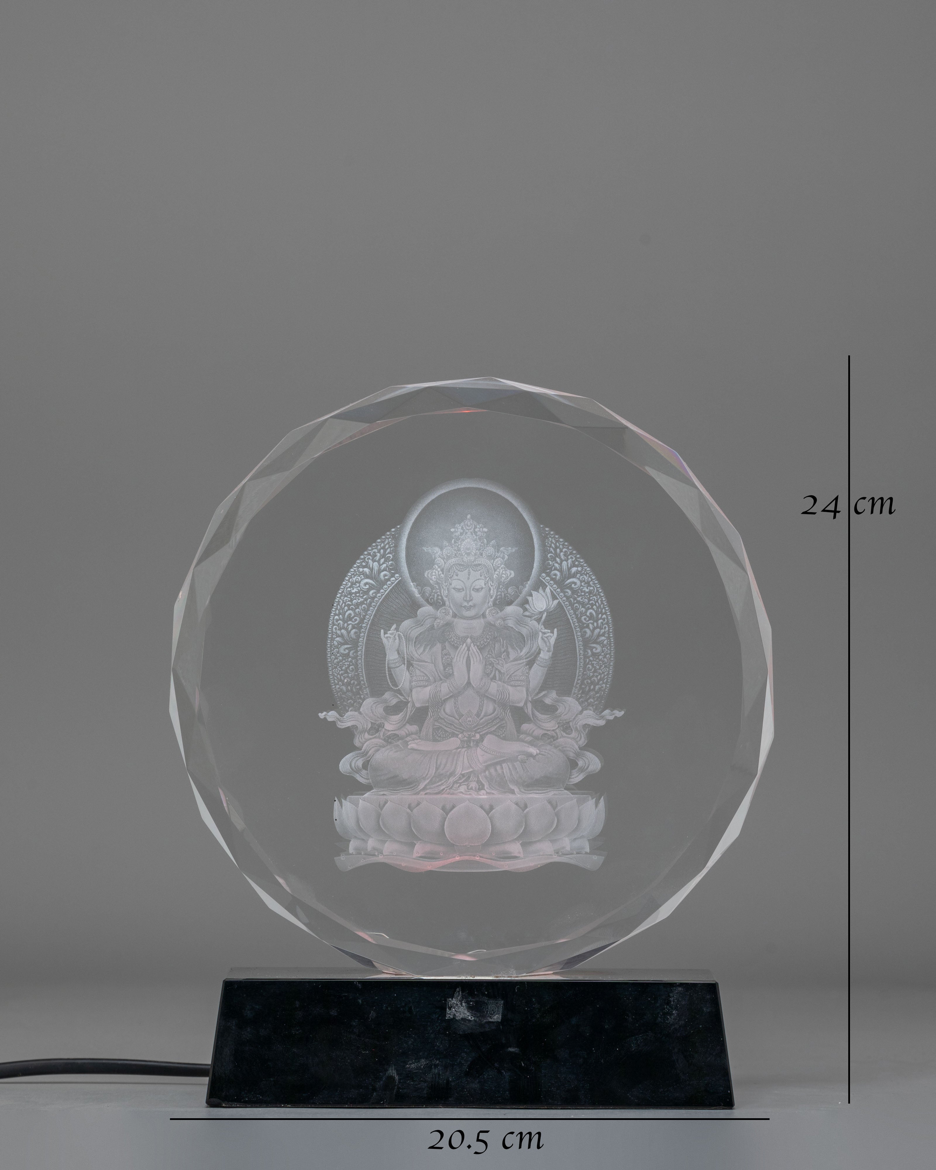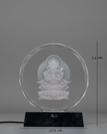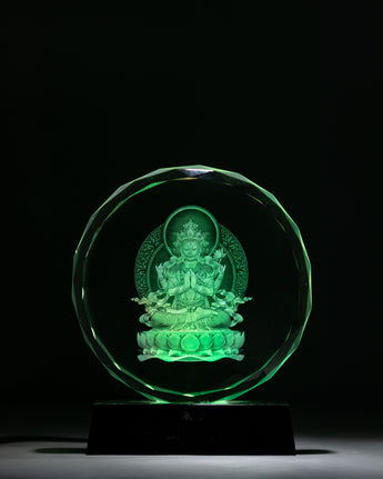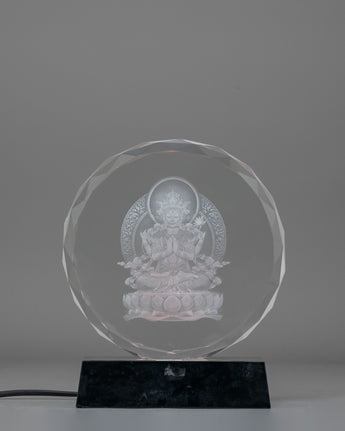 Handcrafted Chenrezig Glass Art with Wooden Base