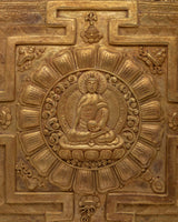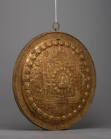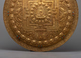 Enjoy our gorgeous Circular Copper Mandala, which has been carefully crafted on a copper body and lavishly plated in 24k gold. With a beautifully carved image of Shakaymuni Buddha in its center that exudes wisdom and calm, this mandala is a priceless representation of spiritual grace and enlightenment.