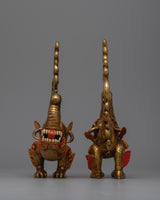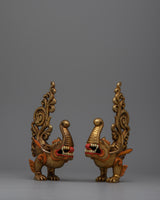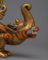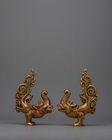 The Copper Dragon Statue Set is an amazing pair of hand-painted dragon statues that have been tastefully gold-plated after being carefully made on copper bodies. These statues have a total weight of 2.158 kg, making them both aesthetically pleasing and substantial. The gold plating highlights the fine craftsmanship and intricacies that give the dragons life, adding a brilliant, regal finish. Each dragon is expertly constructed, demonstrating the artists' commitment to upholding age-old methods and giving the statues a sense of strength and grace.