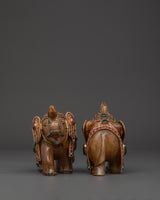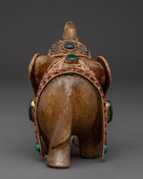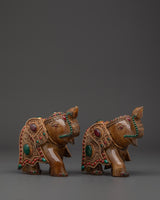 Elevate your living area with our Handcrafted Copper Elephant Set, which is precisely sculpted to add spiritual grace and colorful beauty to your house. These magnificent elephant sculptures are embellished with brilliant crystals, coral, and turquoise inlays and set on a copper base with silver-plated accents. Each elephant weighs 1.232kg and measures 13cm in height and 16cm in breadth, bringing the total weight to 2.464kg. These elephants, whether displayed in a living room, meditation space, or as part of a home shrine, are a sign of strength, wisdom, and good fortune that is respected in many cultures throughout the world.