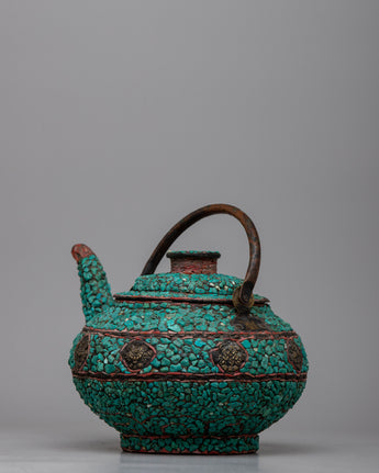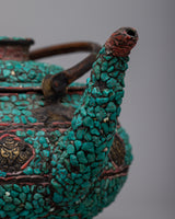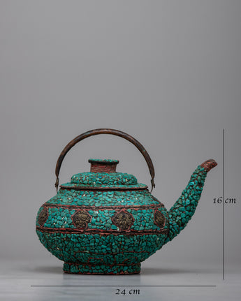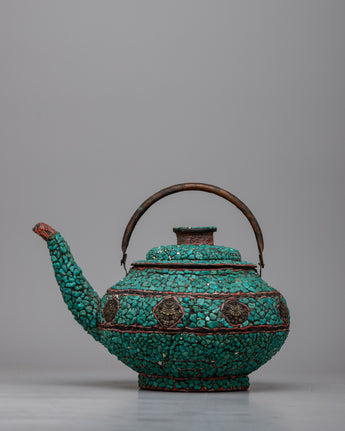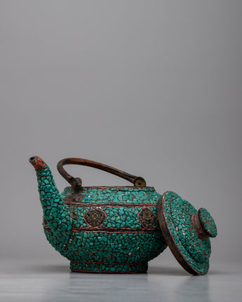 Copper Kettle Tea Pot | Elevating Rituals with Turquoise Stone Adornments