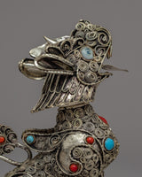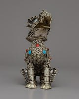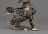 Admire the magnificent Copper Lion Statue, a genuine work of art. This majestic lion was painstakingly crafted from copper and embellished with intricate silver plating to emphasize its regal appearance. It commands attention with its lifelike details and erect posture while standing at a height of 11 cm.